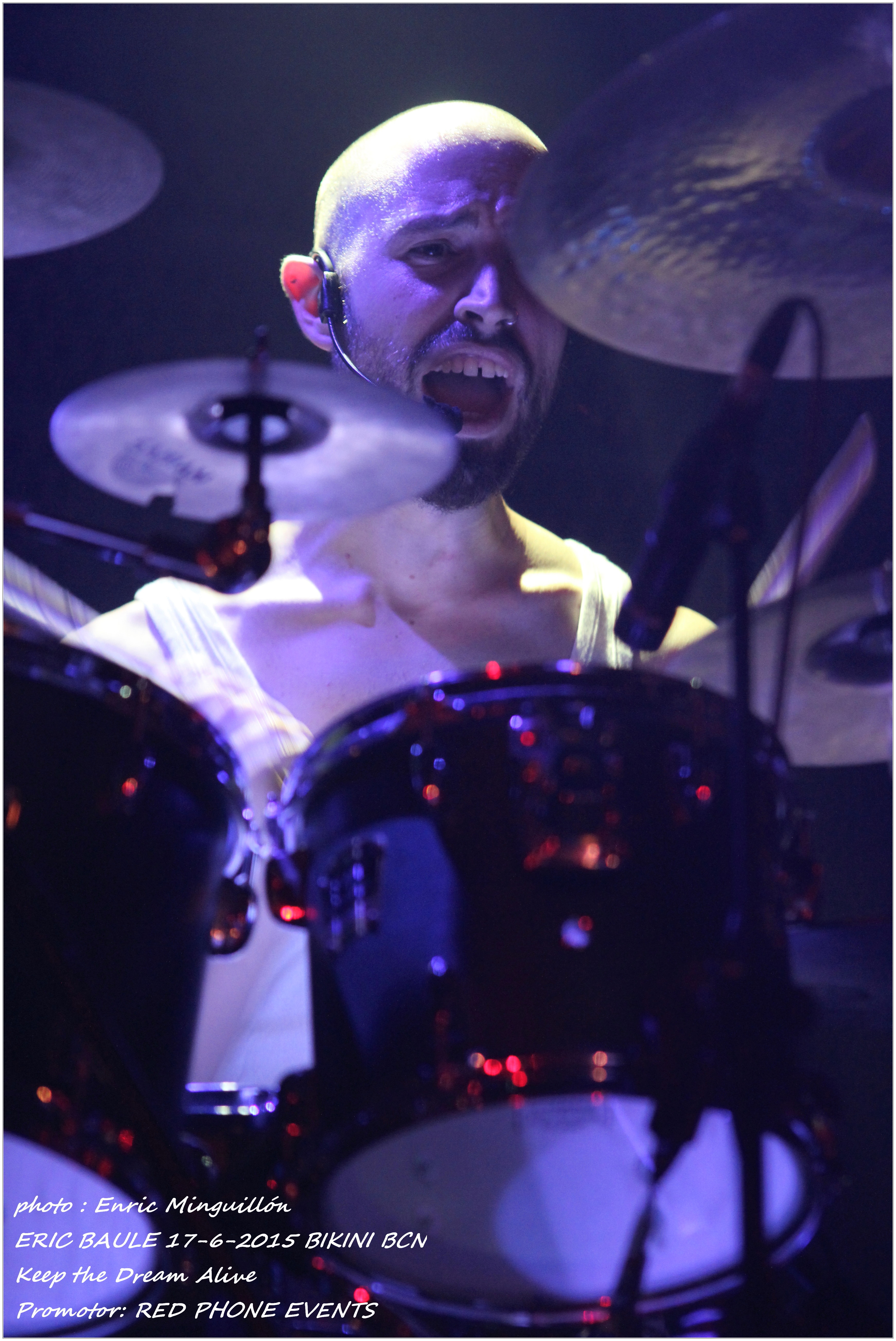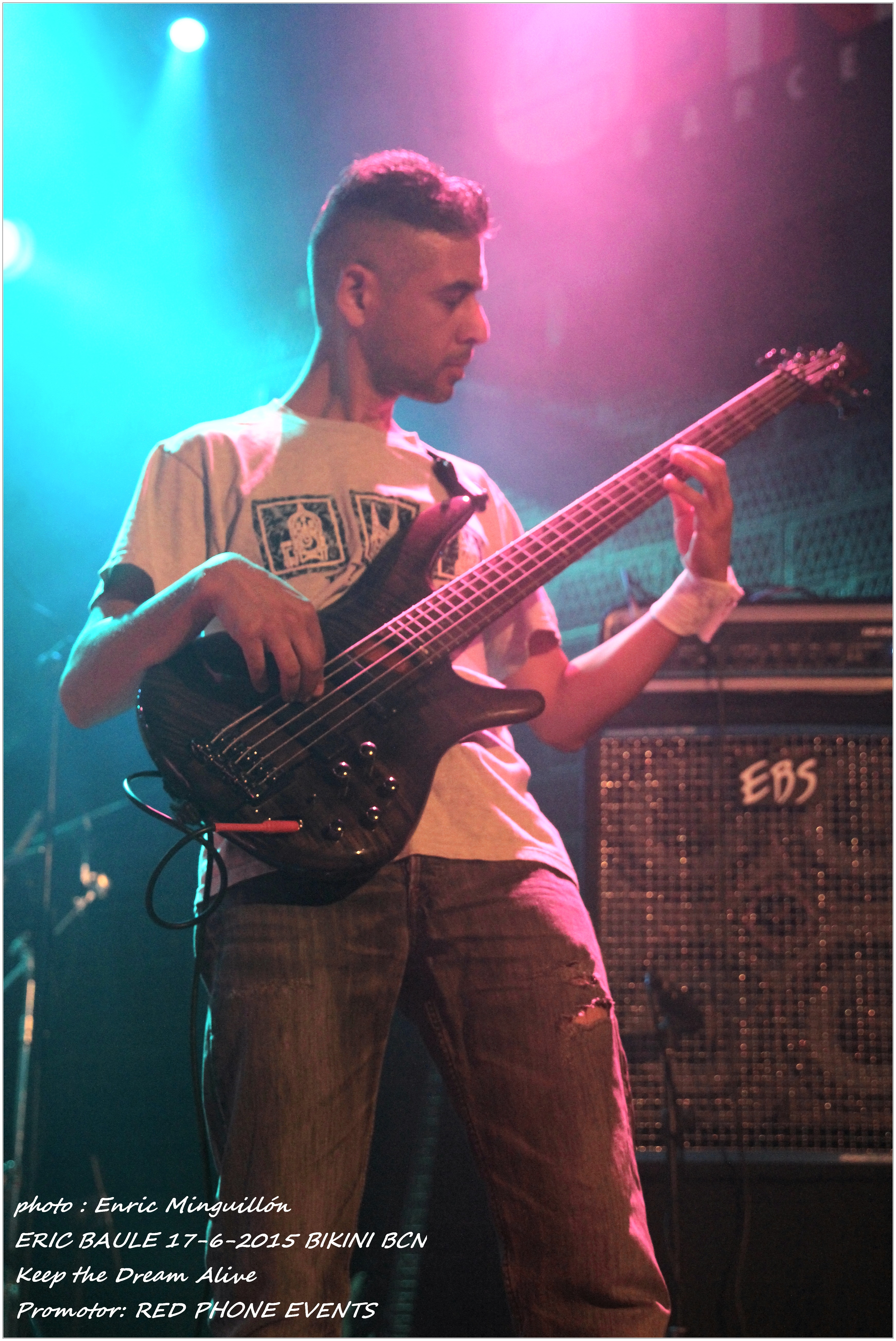 Le siguió ‘Circle of Dead Eyes’, tema de temática oscura, donde Eric da rienda suelta a su rabia no sólo en la guitarra, sino también con voz más gutural. Tanto el teclista que ha incorporado para la gira, Alex Calero, como el baterista, Eric Rovira, al que el propio Baulenas bautiza de hermano, intervienen también reforzando las letras y los coros en todos los temas, aportación considerada de gran valor.