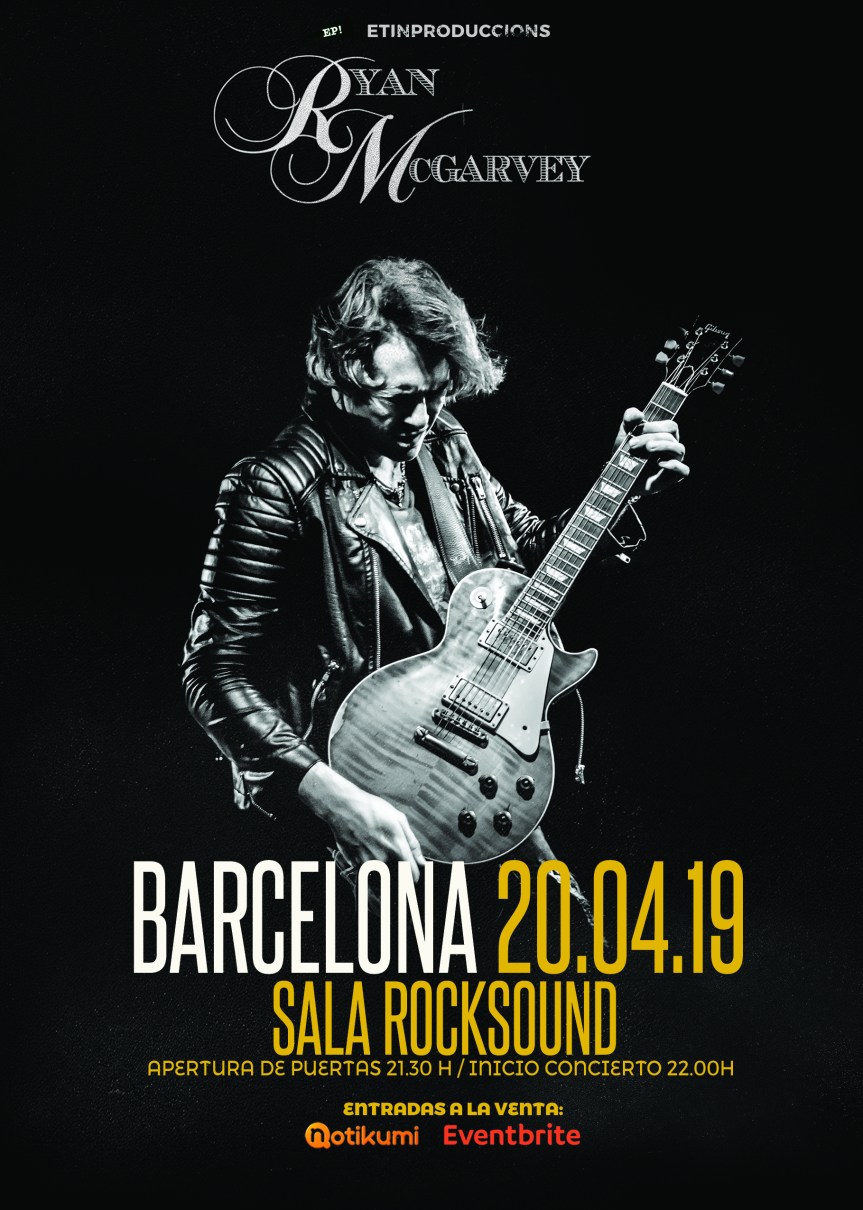 (Del 16 al 21 de agosto) volverá a estar de gira hasta finales de septiembre.Gira que jamás debes dejar pasar, ¡¡Ryan McGarvey es una verdadera estrella del bluesrock !!