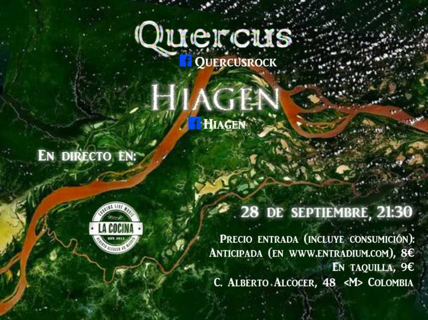 Twitter https://twitter.com/Quercus_rockHIAGEN es una banda de rock progresivo alternativo de Madrid que cuenta con una firme trayectoria que han plasmado en 3 álbumes. Tras cambios en su formación, siguen presentando su último disco: ‘El Diálogo Interior‘ antes de comenzar la grabación del siguiente en 2020.