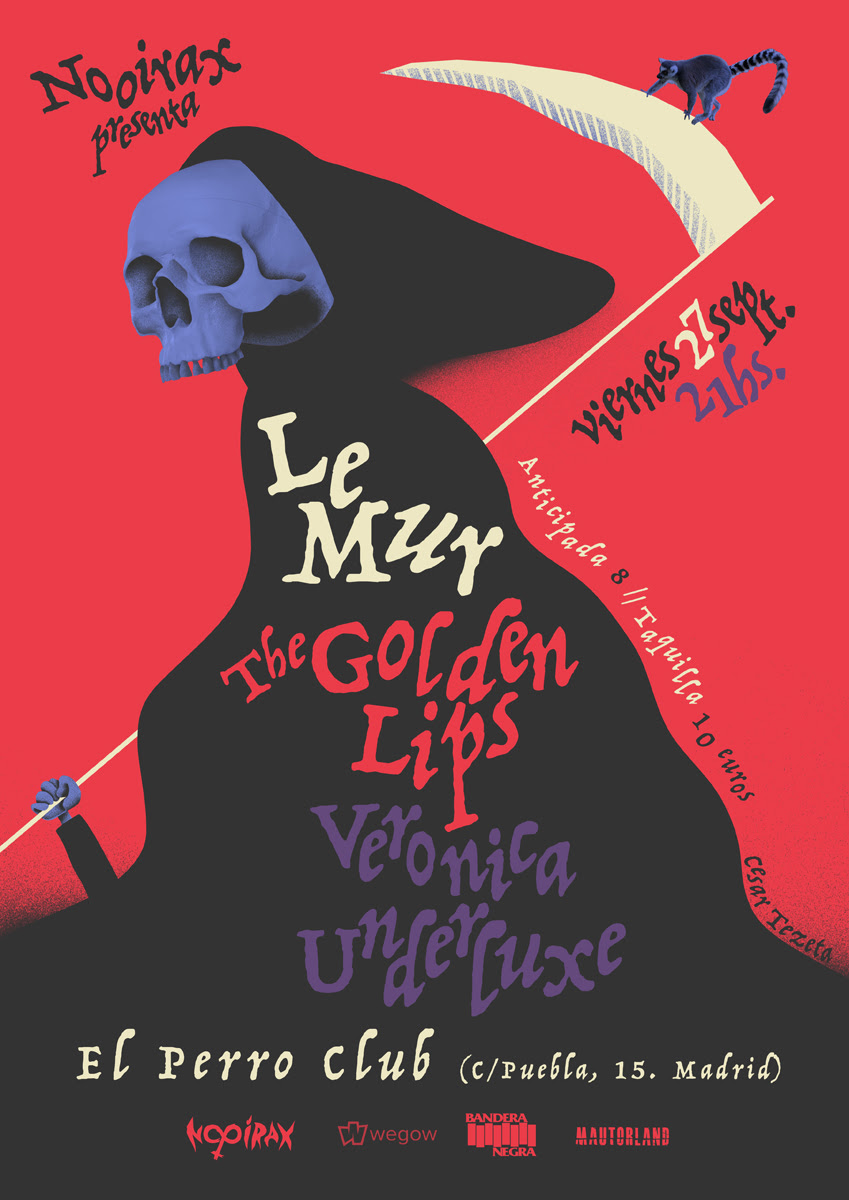 El 27 de septiembre se da cita en la capital madrileña una noche de rock sudoroso en directo en la céntrica sala El Perro club con el último concierto de los murcianos Le Mur antes de adentrarse de pleno en la composición de su segundo trabajo. También será la primera visita a Madrid de los también murcianos The Golden Lips presentando su álbum debut, y como guinda, el espectacular show de los madrileños Veronica Underluxe. El evento comenzará a las 21:00 horas y las entradas anticipadas pueden conseguirse en la plataforma wegow.comLe Mur por Rubén G. Herrera