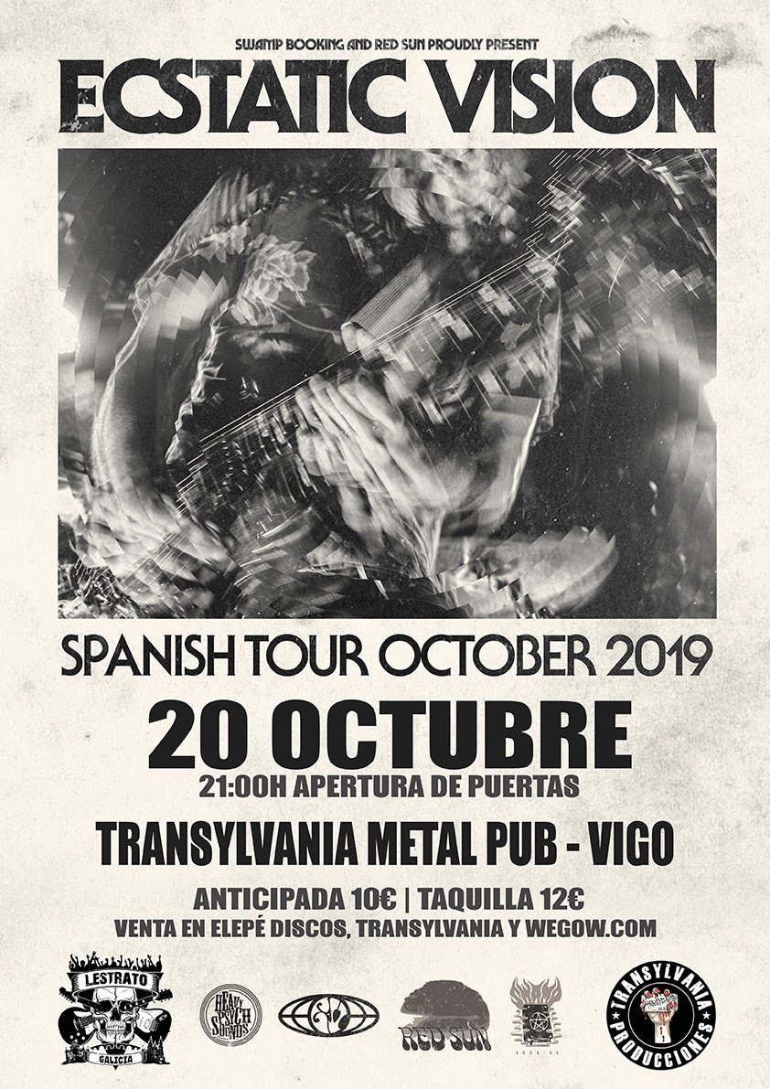 Los magos de la psicodelia ECSTATIC VISION llegan desde Filadefia (USA) y su música está influenciada por grupos como Hawkwind, Aphrodites Child, Olatunji, Can y los primeros Amon Duul ll. Formados a finales de 2013 para principalmente «tocar lo que querían escuchar», la banda rápidamente creo una base sólida de seguidores en su ciudad. ECSTATIC VISION firmó con Relapse Records tras su demostración de poderío en sus increíbles conciertos psicodélicos. Su LP debut, «Sonic Praise» se lanzó en junio de 2015 y durante este tiempo la banda recorrió los Estados Unidos girando con bandas como Enslaved, YOB y Uncle Acid & The Dead Beats, además de compartir escenario con bandas de la talla de Earthless, Red Fang, Acid King y muchos otros. Esto fue seguido por una visita europea que los hizo actuar en el legendario Festival Roadburn, además de fechas con Bang, Pentagram y más bandas.