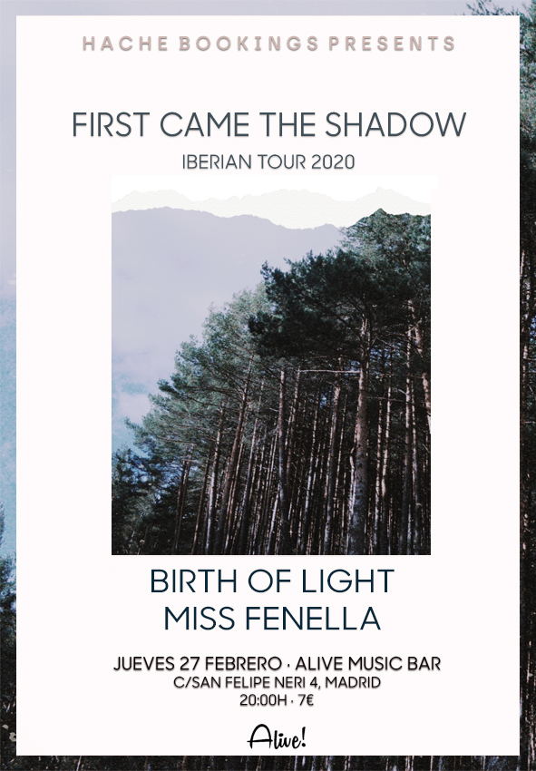 Desde Niza, Francia, vienen First Came The Shadow a presentar su nuevo EP «Premonition» por primera vez en Madrid junto a las nuevas caras del post rock y stoner en la capital Birth Of Light y Miss Fenella.