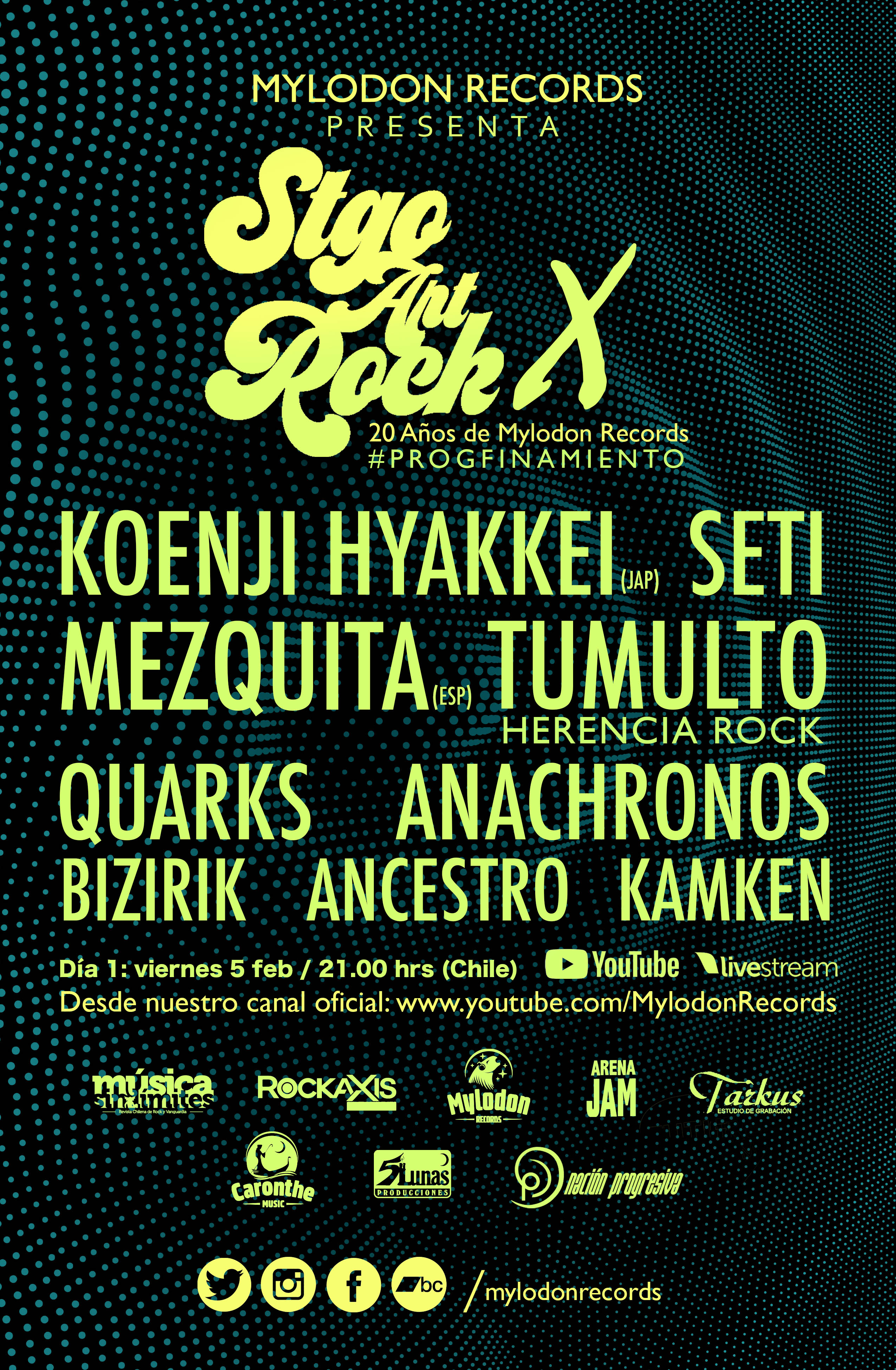 Con un impresionante cartel de 18 bandas chilenas y extranjeras, el sello chileno Mylodon Records celebrará de manera virtual el viernes 5 y sábado 6 de febrero los 20 años de existencia a través de la décima edición del festival Santiago Art Rock.