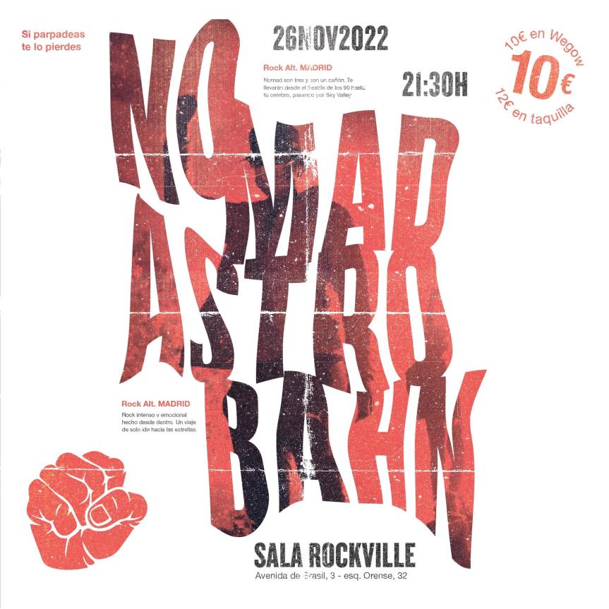 Por un lado Nomad presentarán en directo su último disco Choices, que ha generado excelentes críticas en prensa especializada, y por otro Astrobahn, que mostrarán su último trabajo, Fuego, fantástico disco que supone un giro hacia sonidos más contundentes y comprometidos.