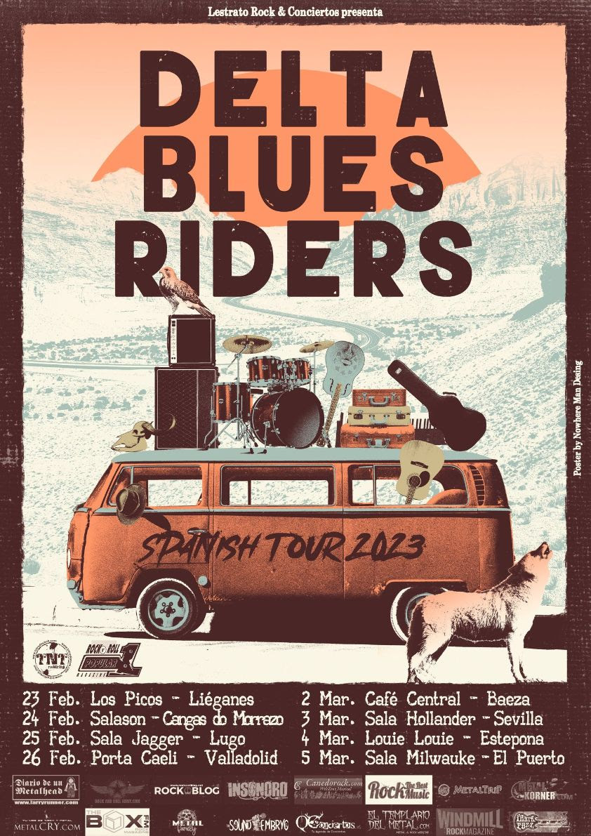 | Aquí os dejamos las fechas de DELTA BLUES RIDERS en su gira ibérica:23 Feb. Los Picos . Liérganes24 Feb. Salason . Cangas do Morrazo25 Feb. Sala Jagger . Lugo26 Feb. Porta Caeli . Valladolid2 Mar. Café Central . Baeza3 Mar. Sala Hollander . Sevilla4 Mar. Louie Louie Live . Estepona5 Mar. Sala Milwaukee . El Puerto de Santa María |