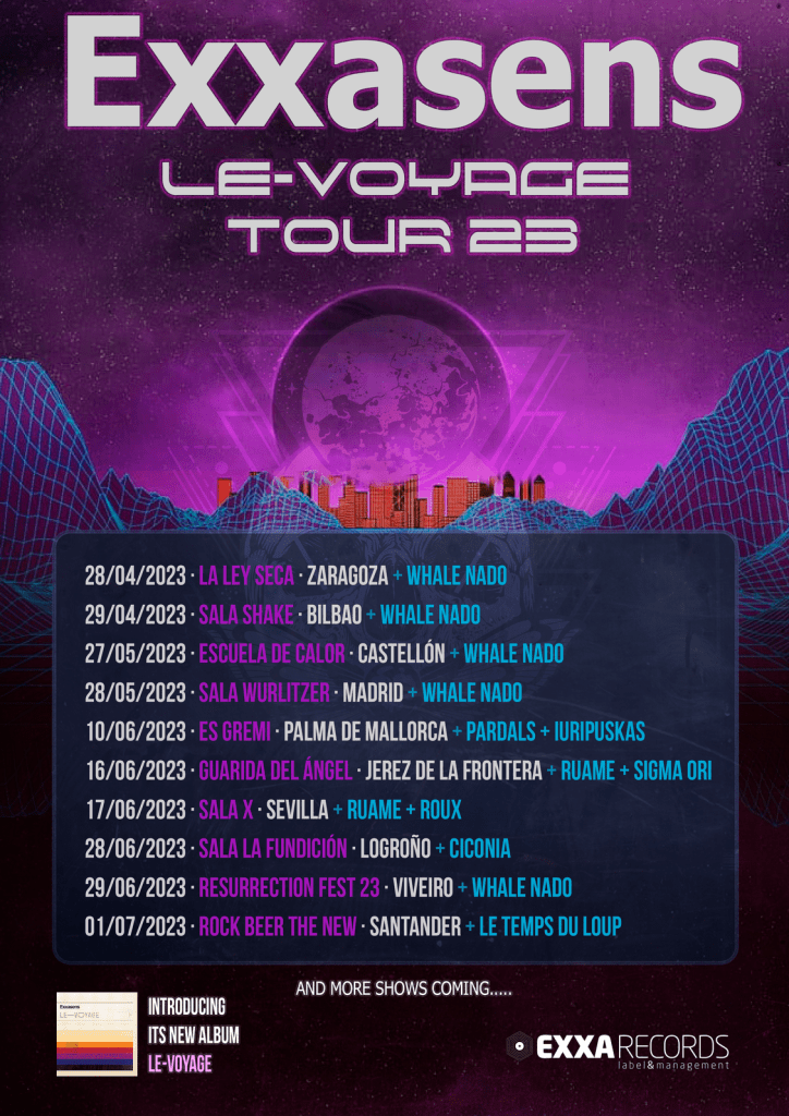 Tras el lanzamiento de su último álbum, el séptimo de su carrera, LE–VOYAGE, EXXASENS volverá a la carretera para presentar sus nuevas canciones por toda la península ibérica.