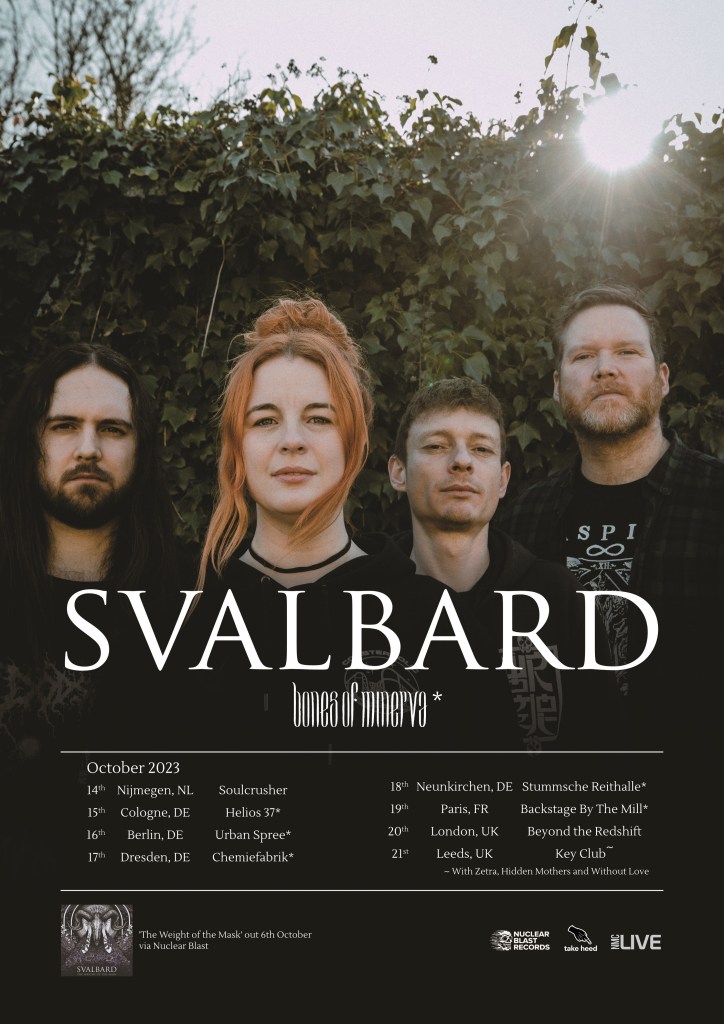 Después de su gira por el Reino Unido, que incluye una actuación en el prestigioso festival ArcTanGent de Bristol, la banda madrileña de post-rock/metal Bones of Minerva se unirá al grupo británico de post-metal Svalbard en su próxima gira de octubre. El cuarteto español apoyará a Svalbard durante sus shows en Alemania y Francia, debutando en ambos países.