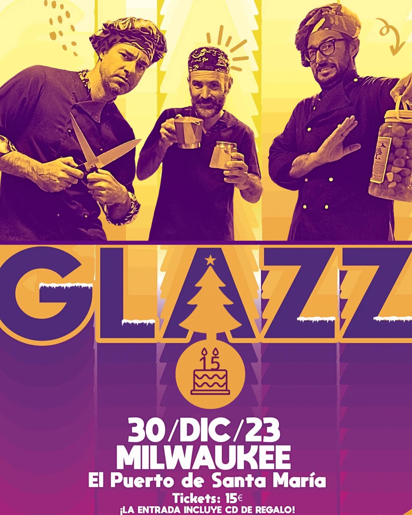 Este concierto tendrá lugar el día 30 de diciembre (en NaviGLAZZ) en la Sala Milwaukee de El Puerto de Santa María (Cádiz). Además, el trío regalará un CD por cada entrada.