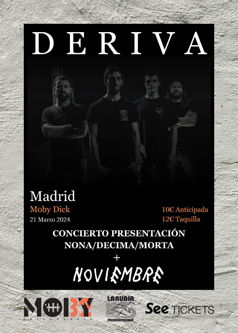 Deriva, la banda de post-rock/metal instrumental asentada en Madrid regresa con un nuevo trabajo donde nos sumerge en sus crudas emociones, sensibilidad y potencia de distintas influencias, consiguiendo evocar esas profundas ideas que las palabras no pueden expresar.