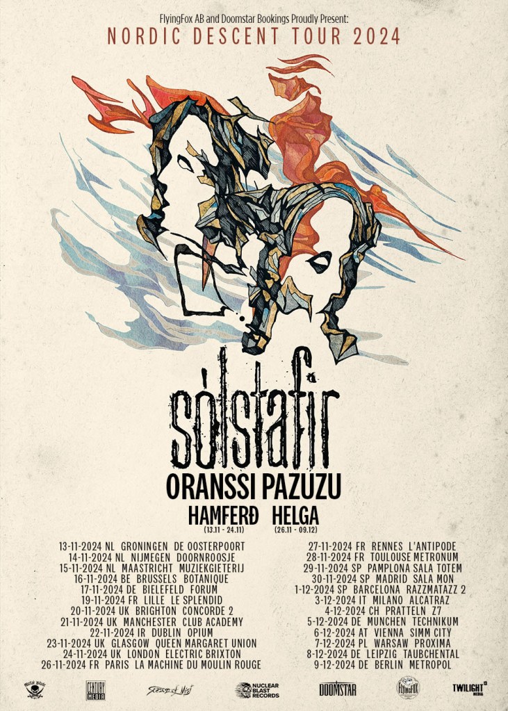 Sólstafir comenta en la gira: “Volveremos con espectáculos largos, nuevas canciones y viejas perlas. Desde que tocamos con Oranssi Pazuzu en Transilvania en 2012, hemos sido fans de ellos, por lo que estamos muy contentos de llevarlos a la carretera con nosotros. También se unen a nosotros nuestros amigos en Hamferð con quienes tocamos en su país de origen en 2013. Y la otra mitad serán nuestros nuevos amigos en Helga ”.