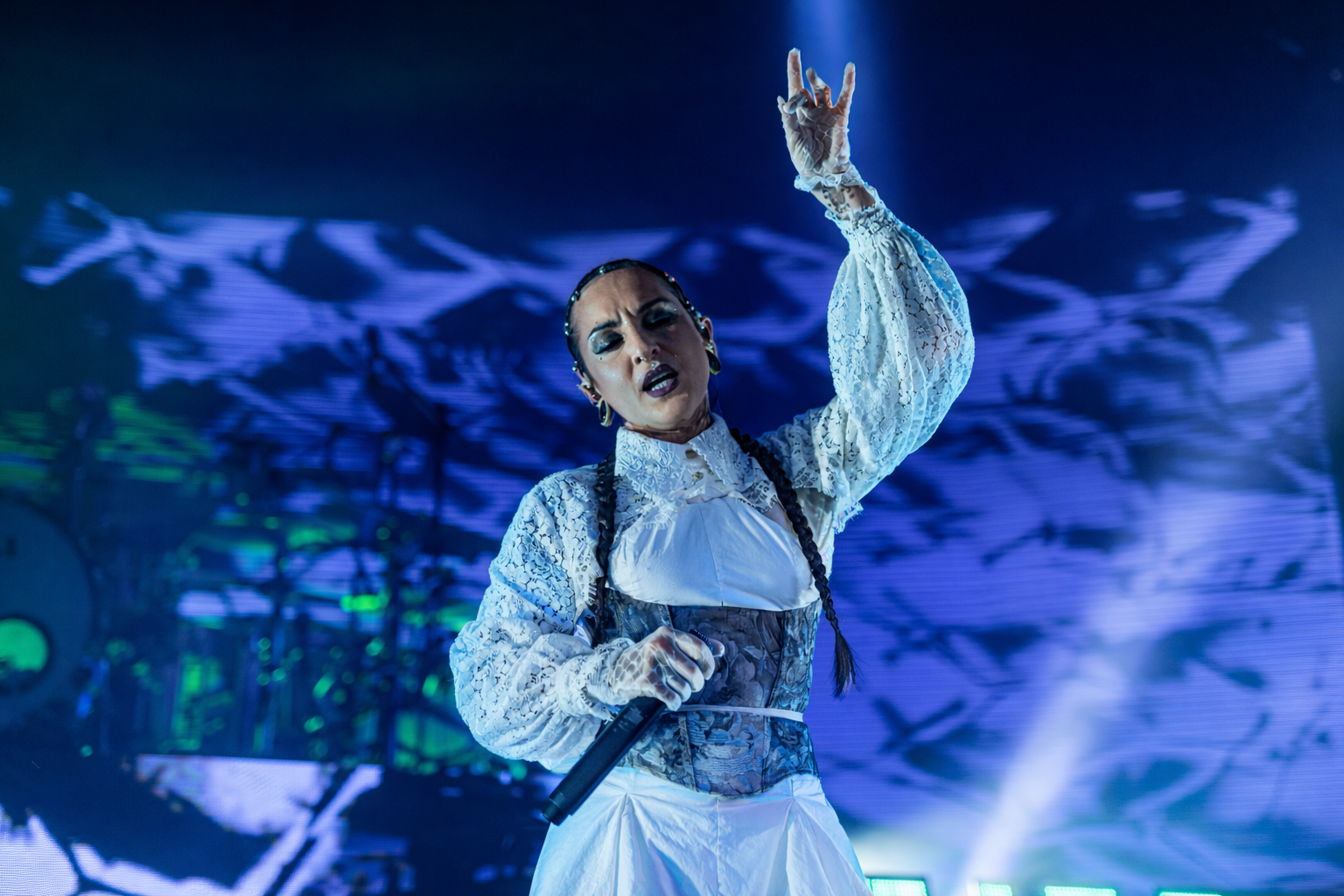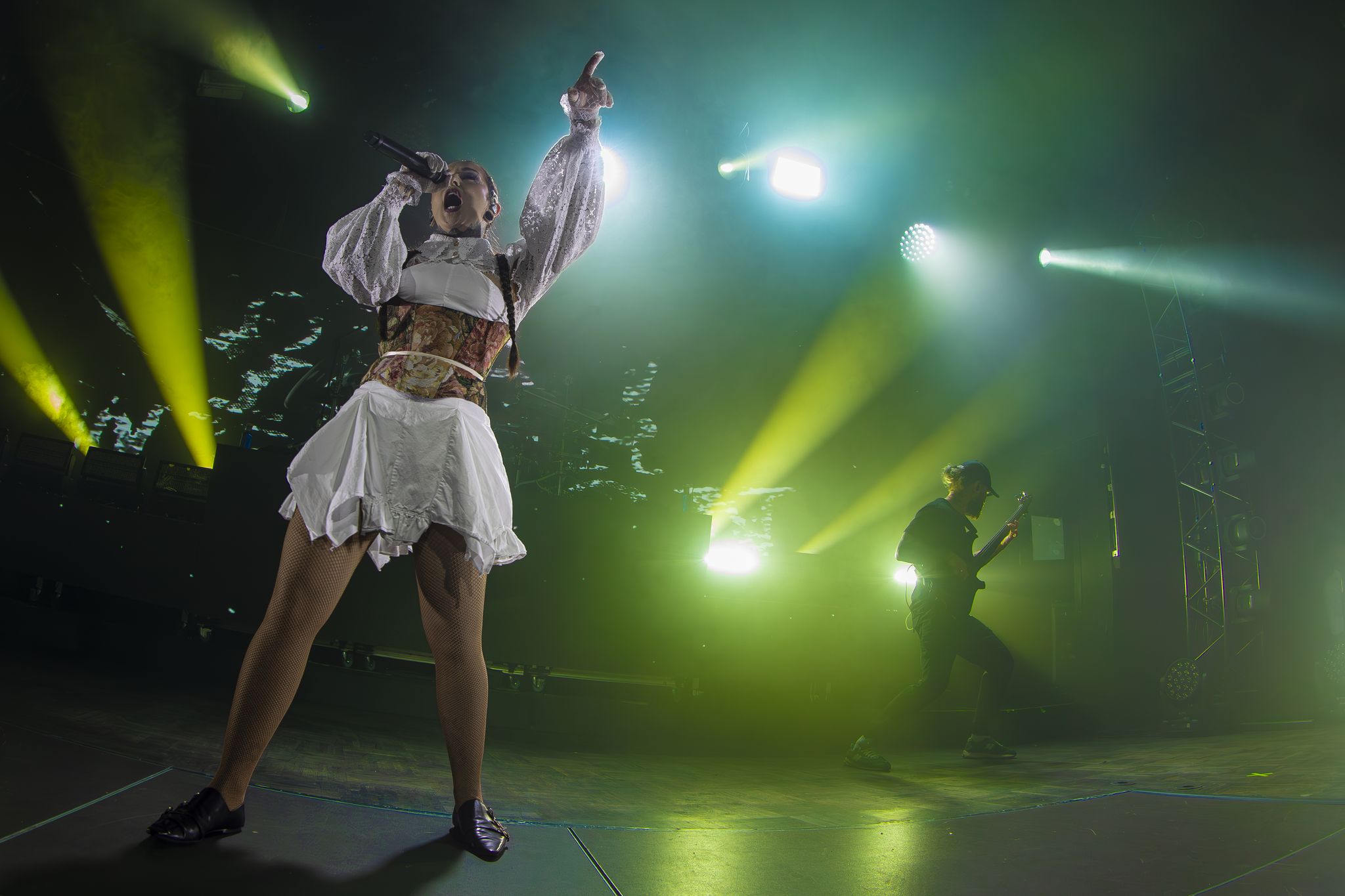 Tras las descargas de las dos bandas mencionadas, a las 20:15, salieron a escena la banda principal de la noche: los ucranianos Jinjer, ya con la sala llena (sold out confirmado por la organización). Presentando, para esta ocasión, su disco Duél (2025) que muestra un paso más allá dentro de la discografía de esta banda, llegando a caminos más técnicos y en cierto modo oscuros respecto a sus anteriores trabajos y llevándolo al directo de manera impecable.